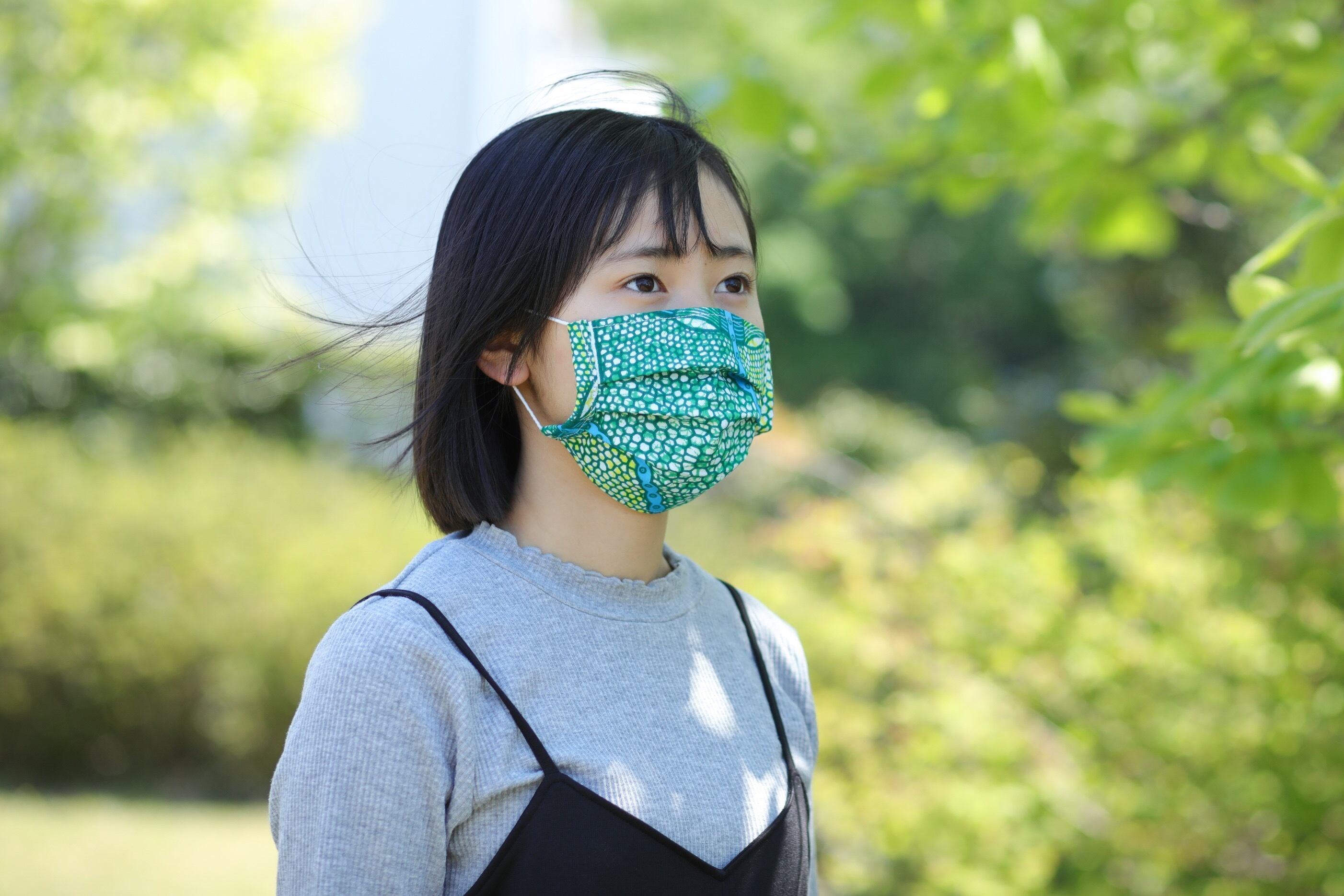 鮮やかなアフリカ布を身につけてちょっとでも前向きに。