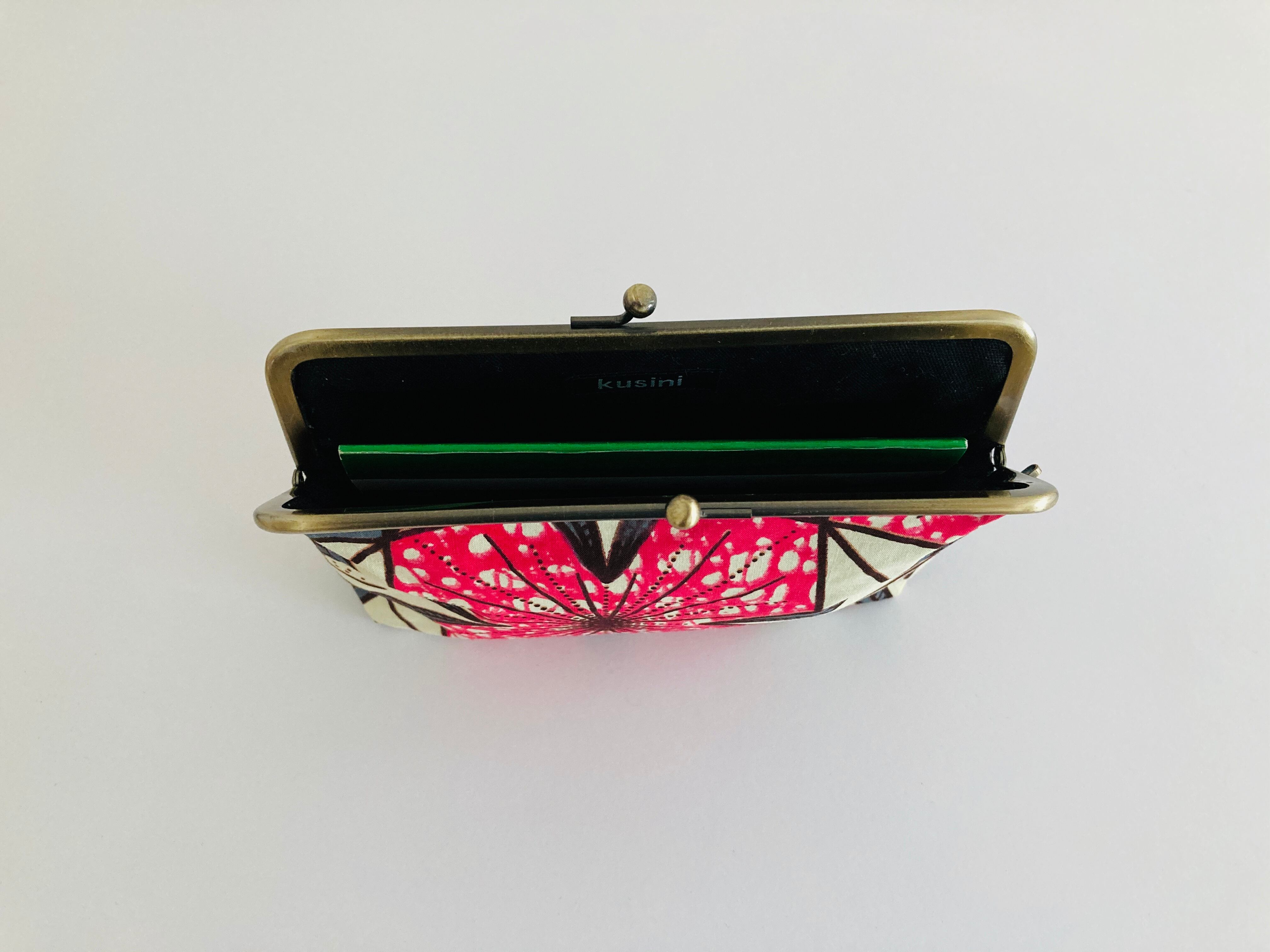 通帳がピッタリ入る、鮮やかな色が目を引くポーチ。